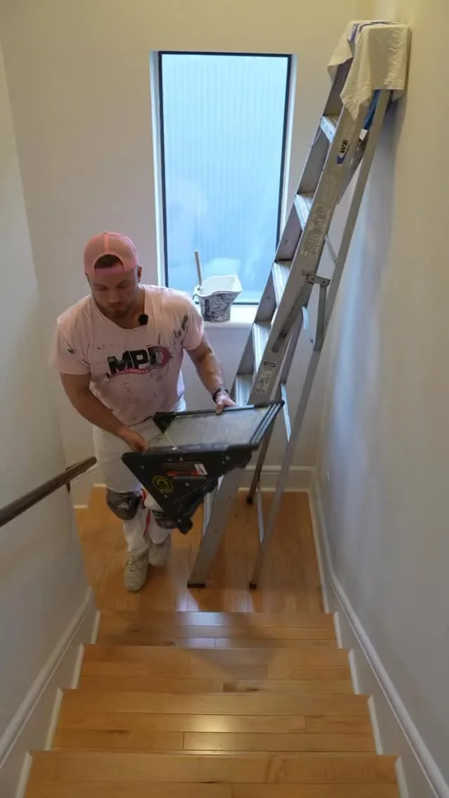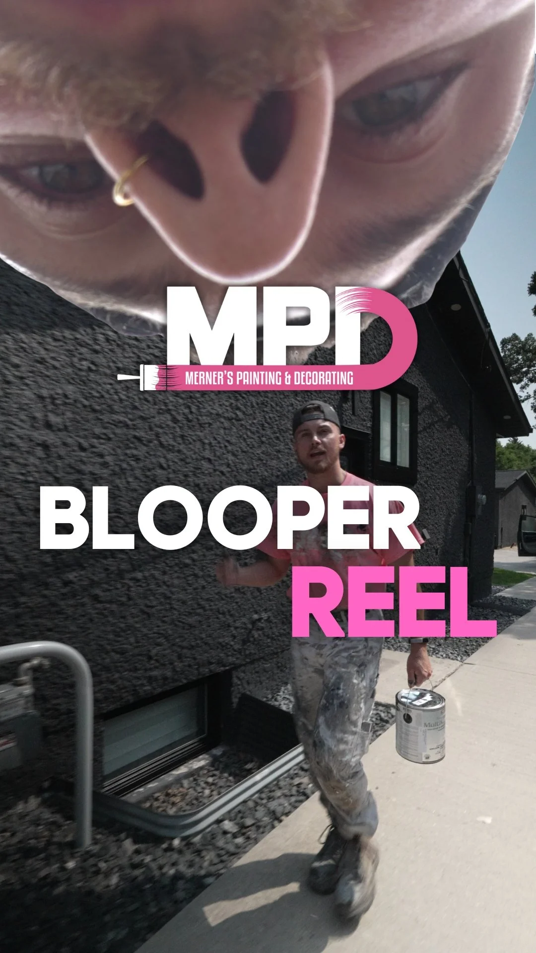 Logo for Merner's Painting and Decorating featuring large black letters 'MPD' and a pink paintbrush with black bristles. The company's name and services are written on the brush.