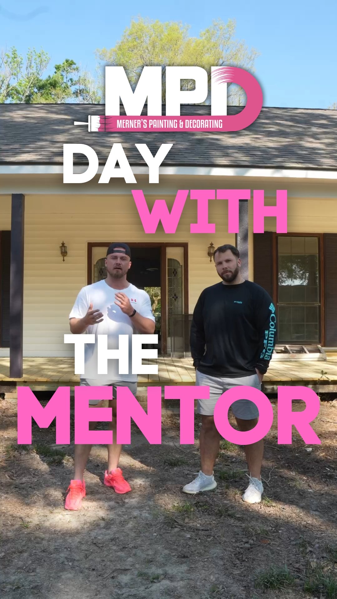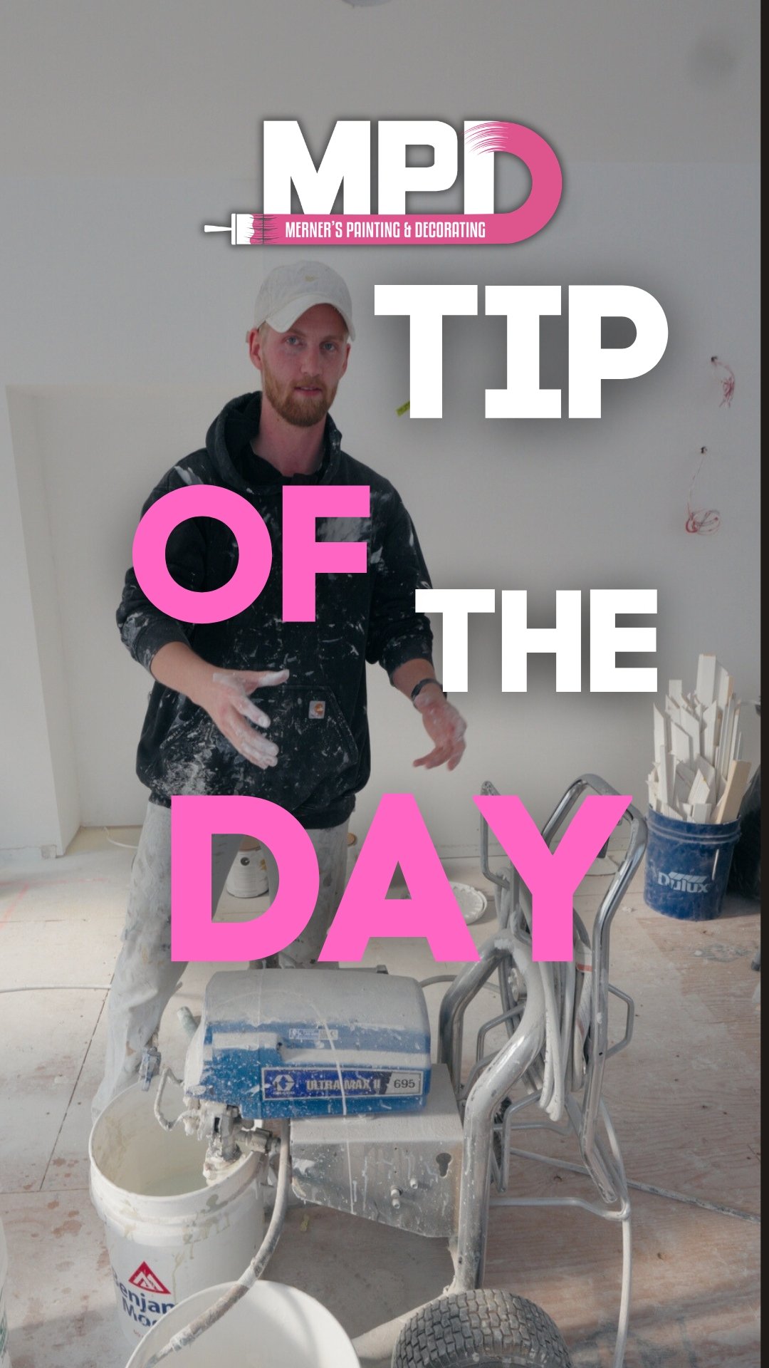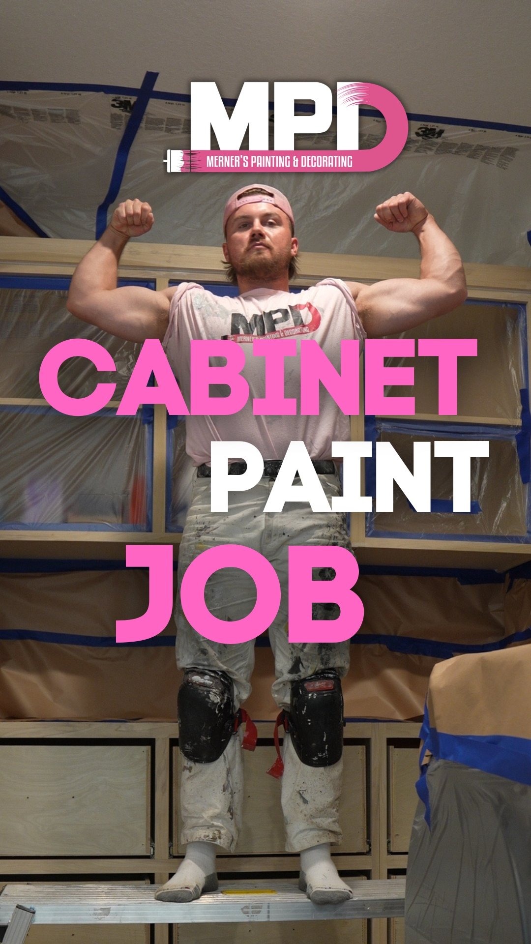 Logo for Merner's Painting and Decorating featuring large black letters 'MPD' and a pink paintbrush with black bristles. The company's name and services are written on the brush.