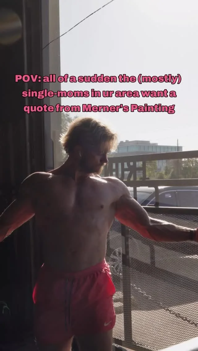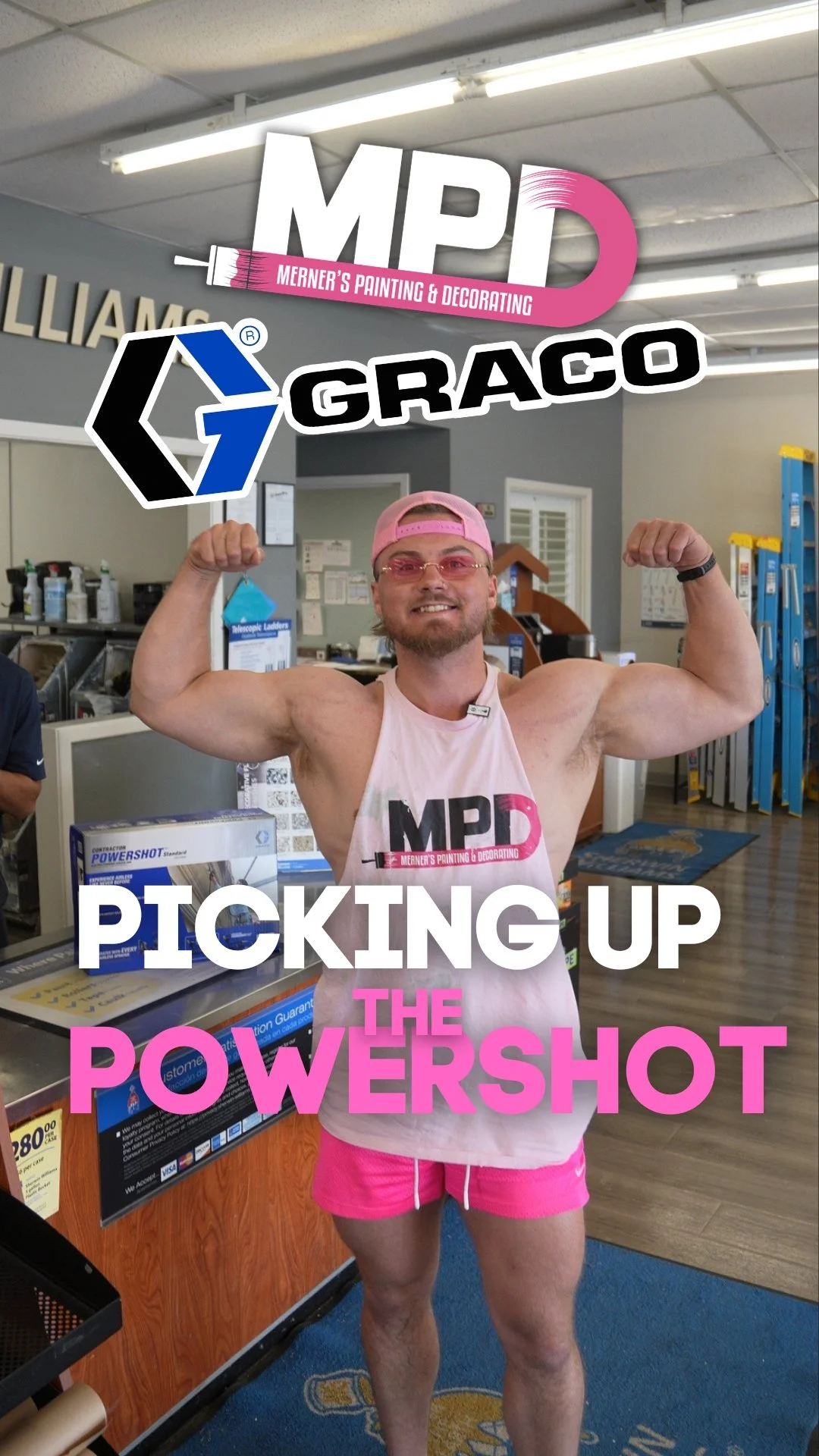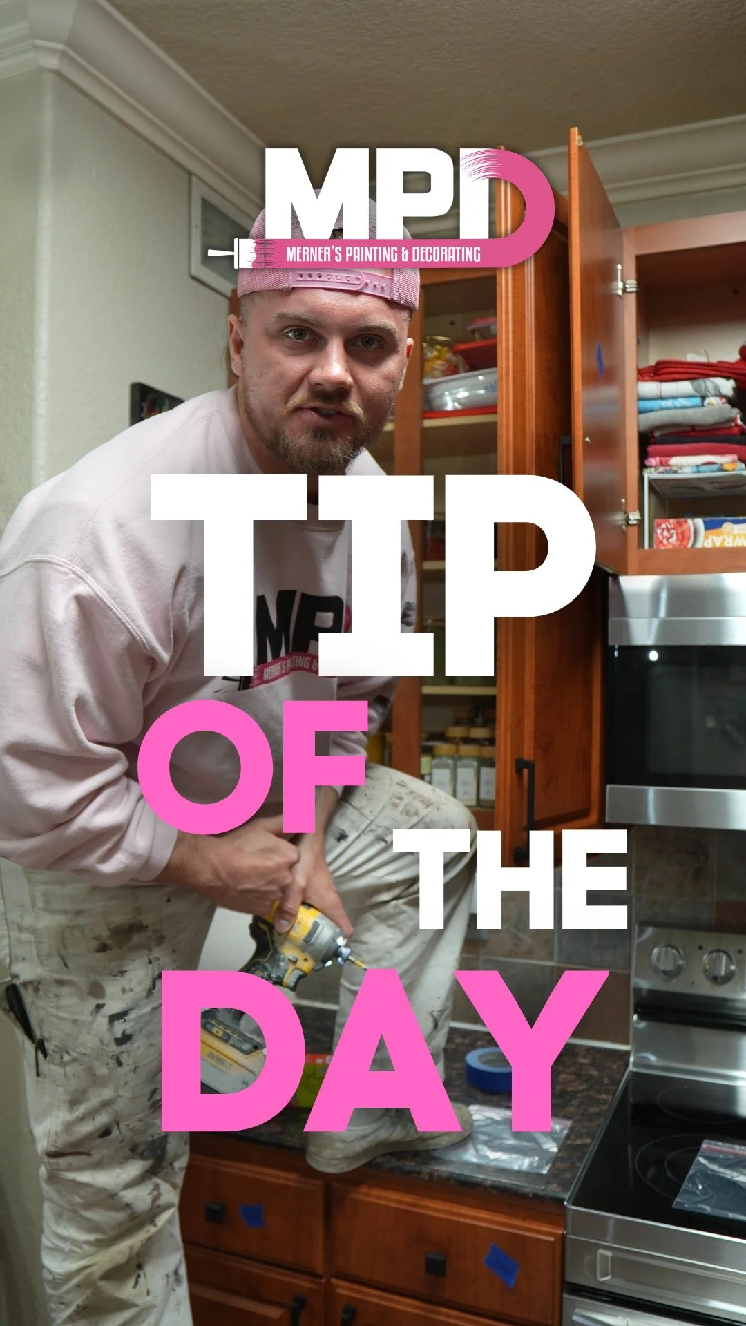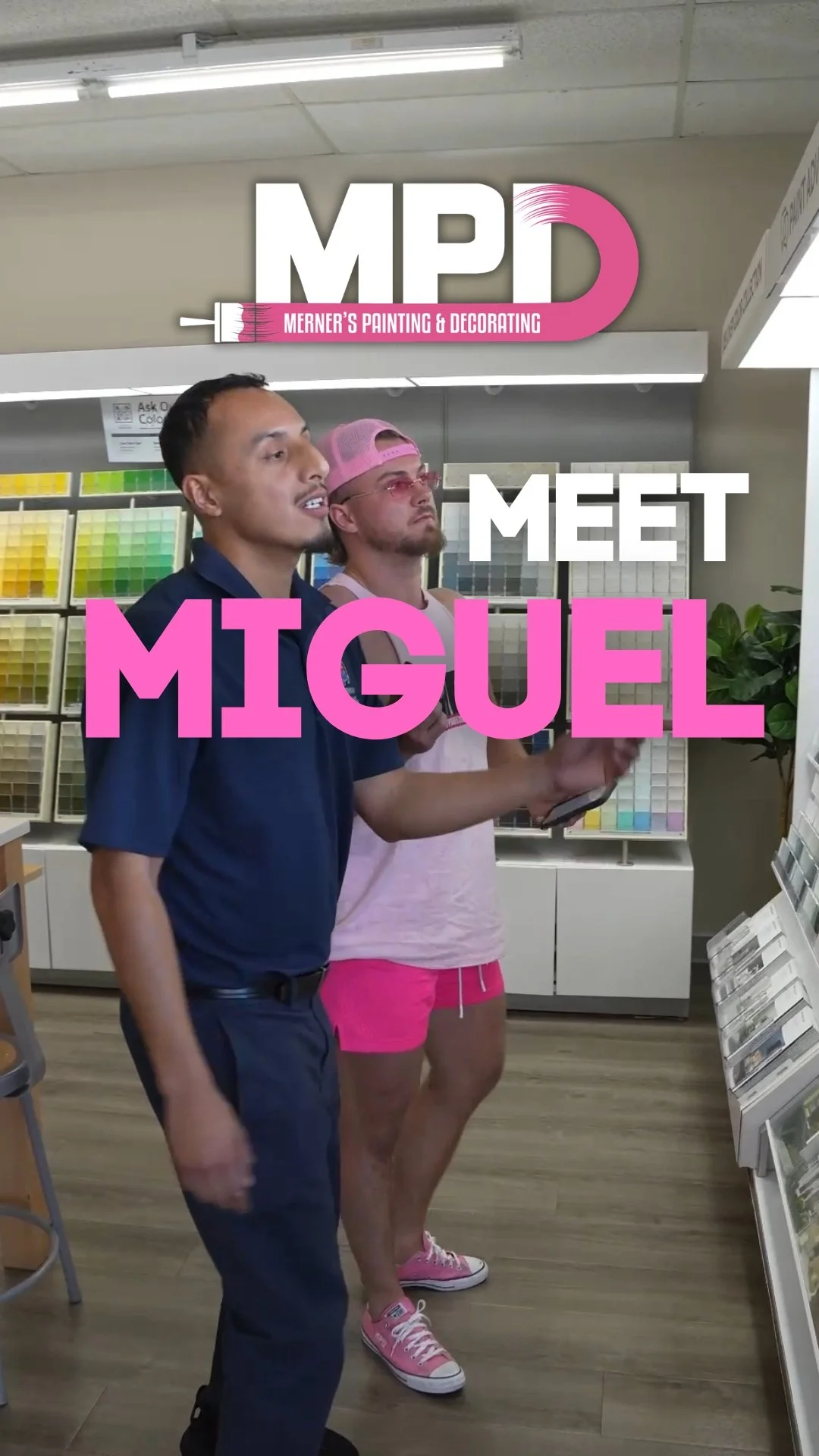 Logo for Merner's Painting and Decorating featuring large black letters 'MPD' and a pink paintbrush with black bristles. The company's name and services are written on the brush.
