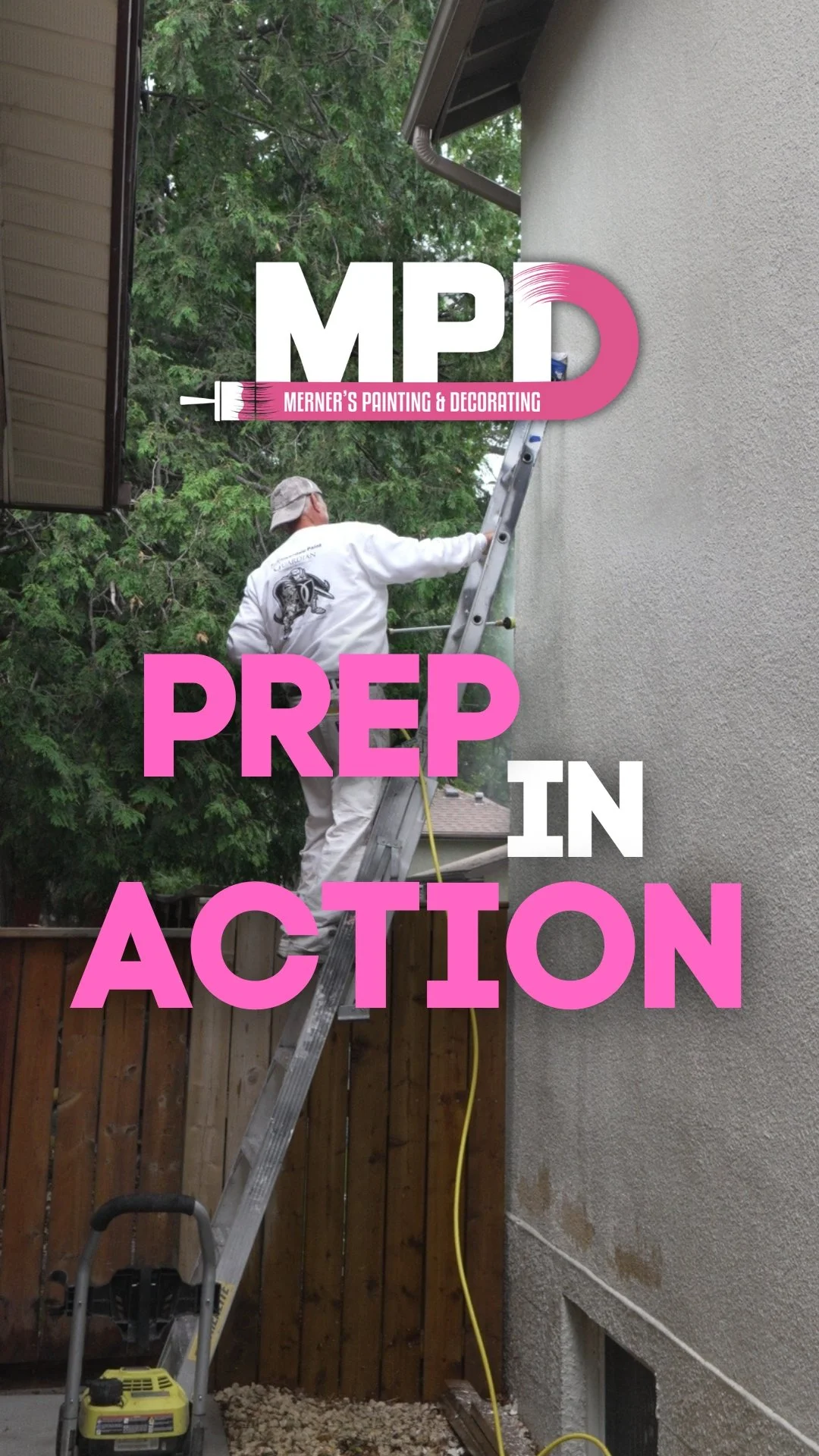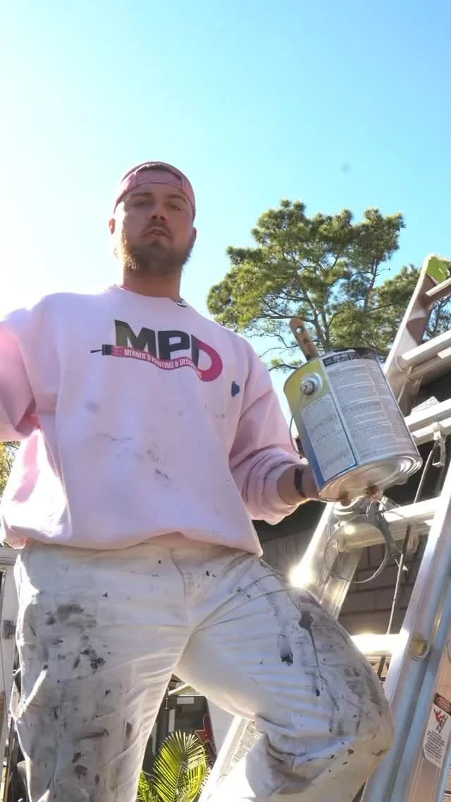 Logo for Merner's Painting and Decorating featuring large black letters 'MPD' and a pink paintbrush with black bristles. The company's name and services are written on the brush.